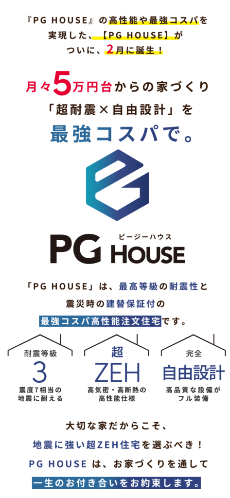 【PG HOUSE】2月誕生!最強コスパ×高性能の家づくり